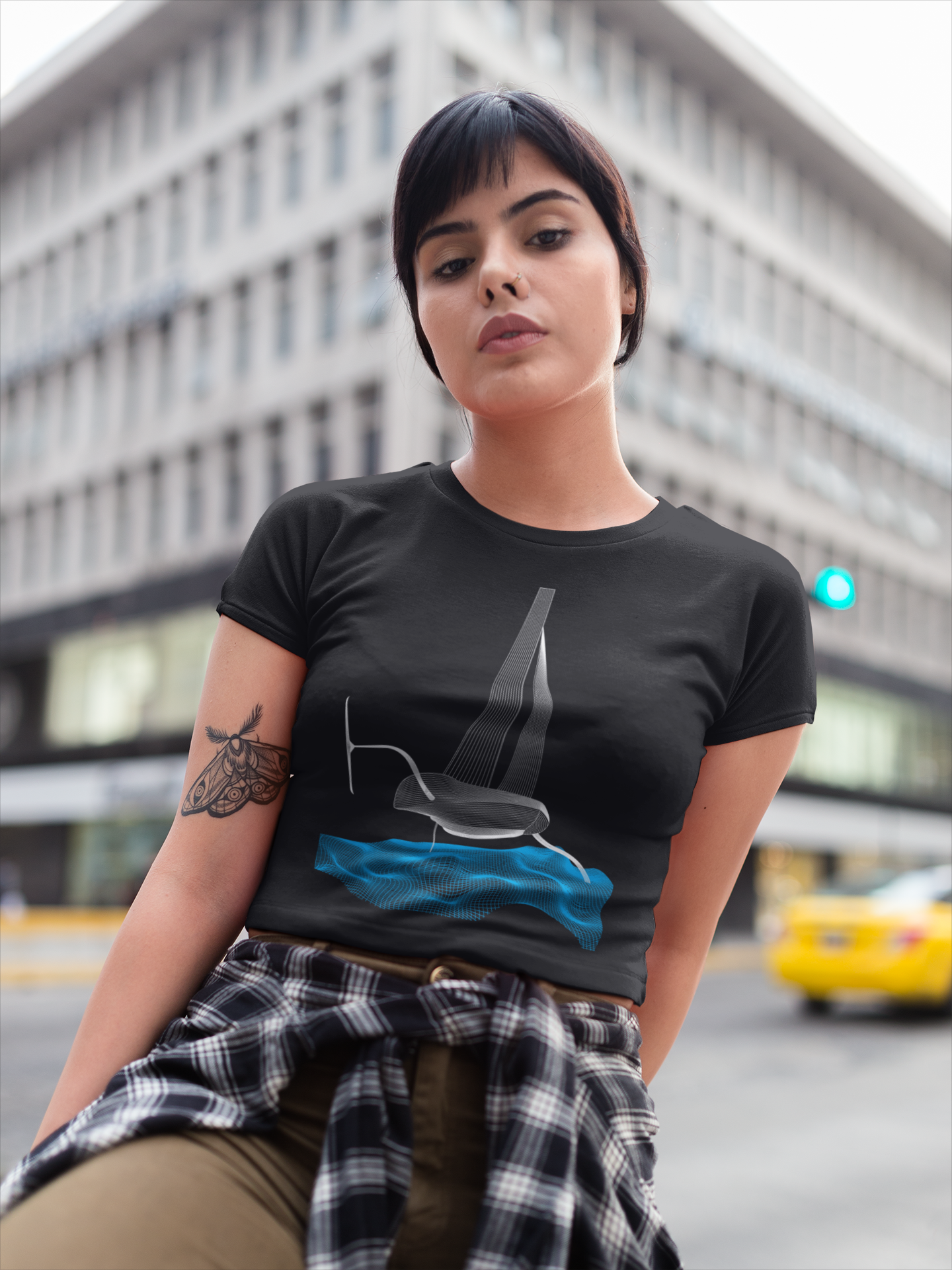 A very cool wire frame design of a foiling AC boat cutting through the water.